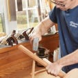 Starting with the seat blank from the cutlist, you want to mark the center by drawing intersecting lines from corner to corner. I do this on both sides of the blank. Then you must decide which are the top and bottom faces. I prefer to make the top the bark side of the tree as it will give a more pleasing grain pattern when dished. Once that is decided, set your compass to 5-¾” and draw an 11-½” circle on the bottom face using the center point you marked. This is the outside of the seat.