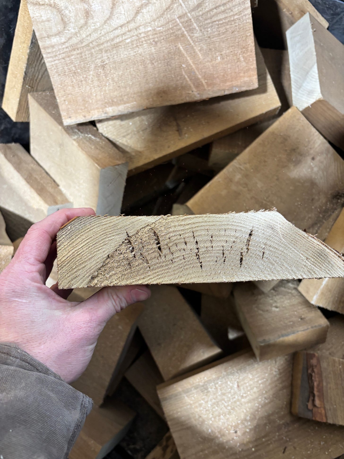 Let me explain MC mathematically for a second. MC is calculated by taking the weight of the water in the sample divided by the dry (bone dry zero water) weight of the wood cellulose multiplied by 100 for the MC%. let’s say a 100gram wet sample after being taken to bone dry weighs now 40grams that was 60grams of water. 60 grams of water divided by 40 grams of cellulose ×100 would be 150% moisture.